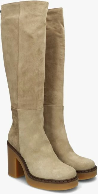 Couleur: taupeMatière extérieure: daimMatière intérieure: cuirSemelle matérielle: caoutchoucFermeture: fermeture éclairForme du talon: talon carréHauteur de talon (cm): 10Bout de la chaussure: bout carréHauteur d’axe des bottes (cm): 40