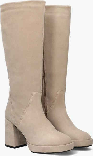 Couleur: beigeMatière extérieure: daimMatière intérieure: cuir, textileSemelle matérielle: caoutchoucFermeture: fermeture éclairForme du talon: talon carréHauteur de talon (cm): 9Bout de la chaussure: bout carréHauteur d’axe des bottes (cm): 35