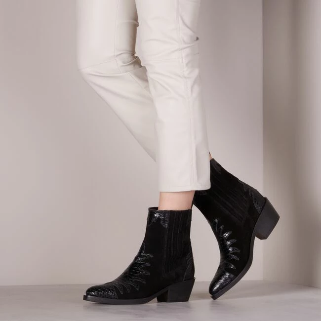 Couleur: noirTrends: city westernMatière extérieure: daimMatière intérieure: textileSemelle matérielle: caoutchoucForme du talon: talon carréHauteur de talon (cm): 5Bout de la chaussure: bout pointuHauteur d’axe des bottes (cm): 16Semelle plantaire amovible: non